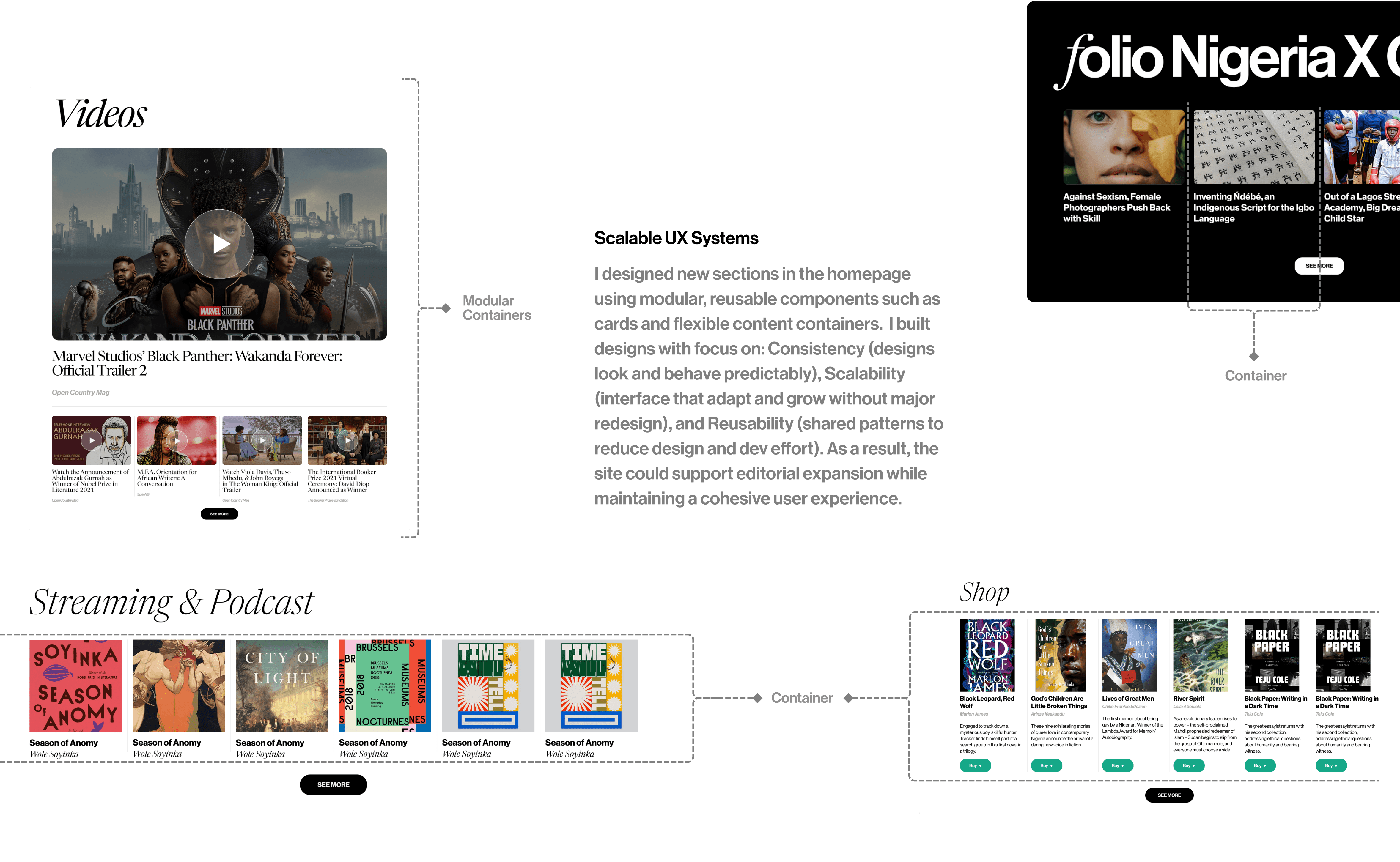 Modular sections for new content types to easily add sections to support scalability and growth in audience interests.